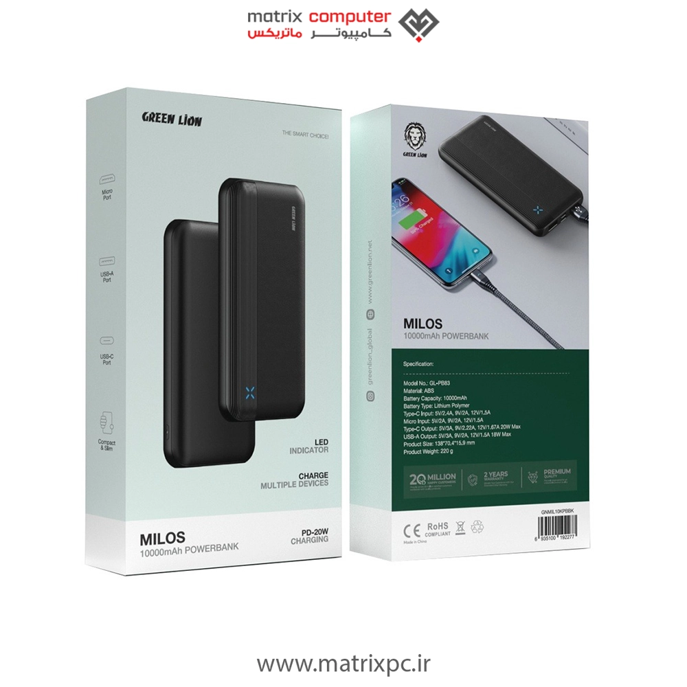 پاوربانک گرین لاین مدل Milos ظرفیت 10 هزار و 20 هزار میلی آمپر