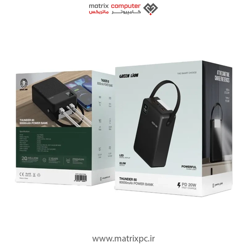 پاوربانک گرین لاین مدل Thunder 80 ظرفیت 80000 میلی آمپر ساعت